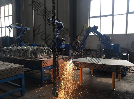 ... 焊接機(jī)器人進(jìn)行不銹鋼板弧形焊接坡口切割...